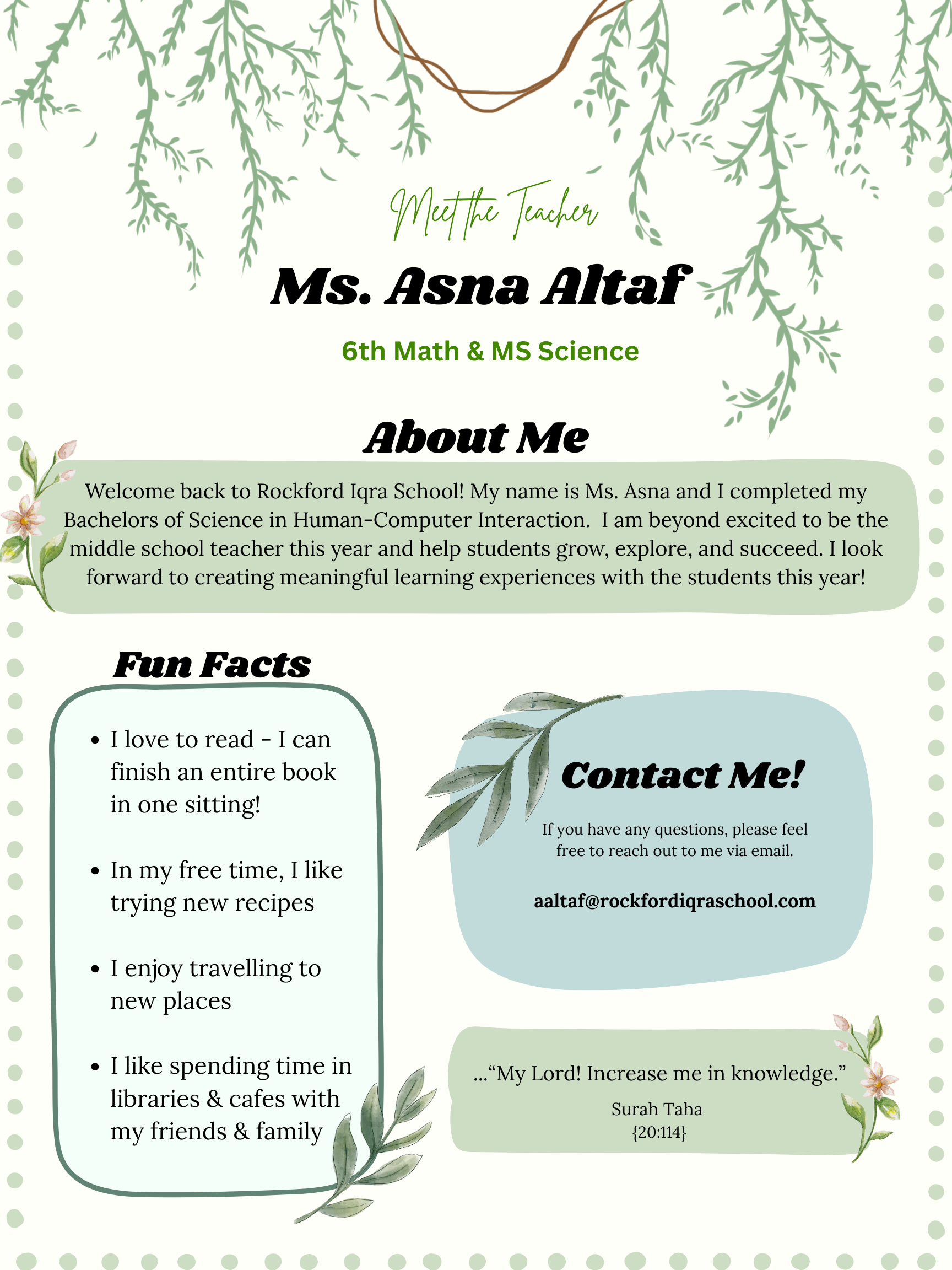 Quran, Arabic, Islamic Studies Teacher
